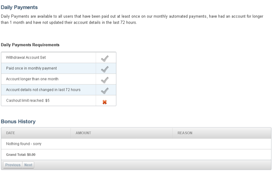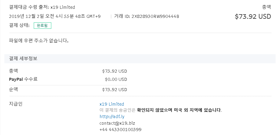 여튼, 저는 그동안 쌓인 돈을 출금했고, $73.92를 송금 받은 후, 73달러를 출금 신청했고,