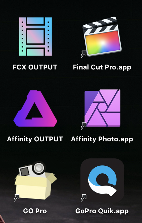 예를 들어, 저는 어피니티, 파이널컷의 작업물을 저장하는 폴더와, 고프로, 스크린샷, 그리고 카메라의 촬영물을 저장하는 폴더가 데스크탑에 몰려 있습니다. 이런 경우에는 폴더끼리의 혼동이 오기 쉽죠. 그래서 개인적으로 먼저 시도해 봤는데 꽤나 괜찮아서 여러분께도 공유해보려 합니다.