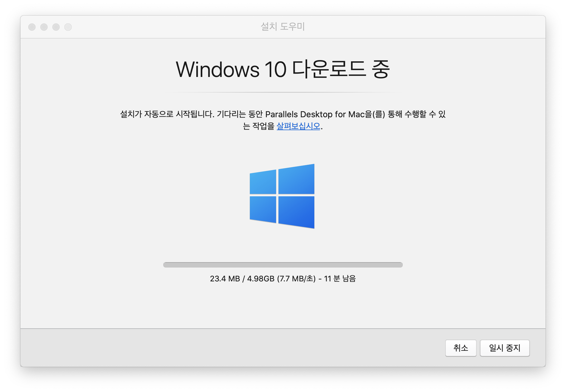 홈페이지에서 받은 파일을 실행하면 패러렐즈가 설치되는데,