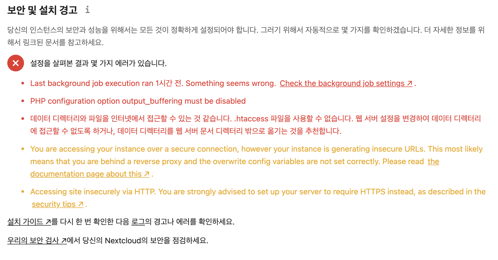 공식 홈페이지 문서에서는 .htaccess 파일을 수정하라고 하는데, 나는 아파치 폴더 안에 있는 nextcloud.conf를 수정해서 해결했다.