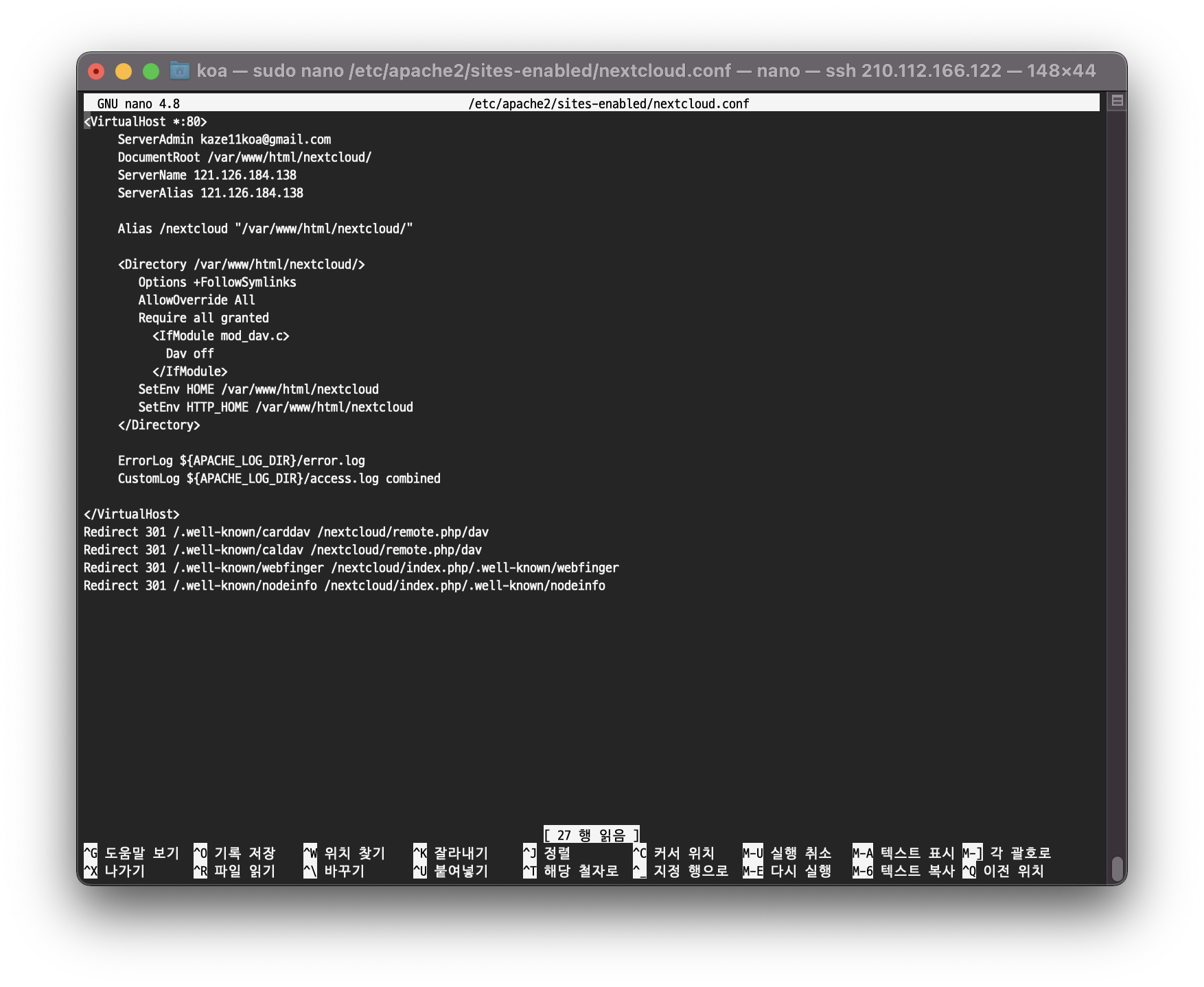 sudo nano /etc/apache2/sites-enabled/nextcloud.conf