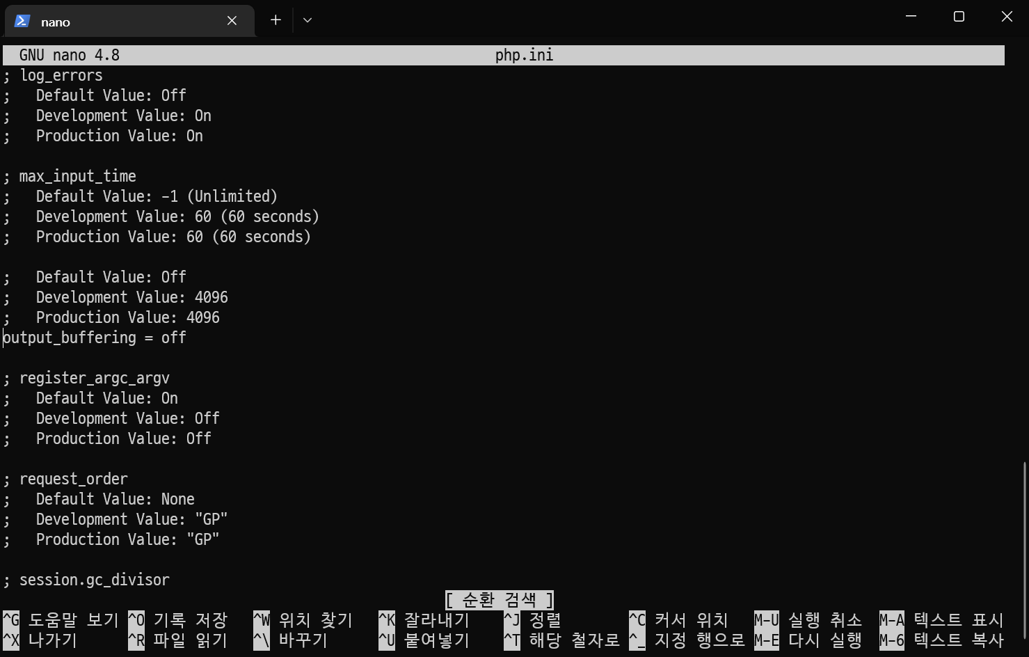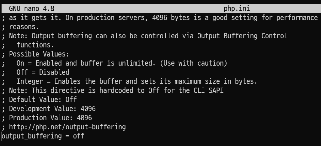 output_buffering 을 검색하여 총 두개의 옵션을 찾아냈다.