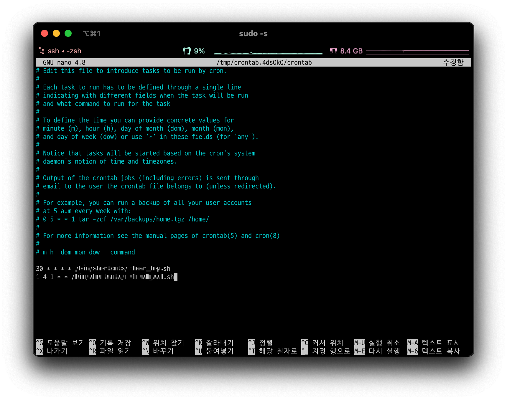 # 예를 들면, * * * * * /bin/script/automatioin.sh 이런 식