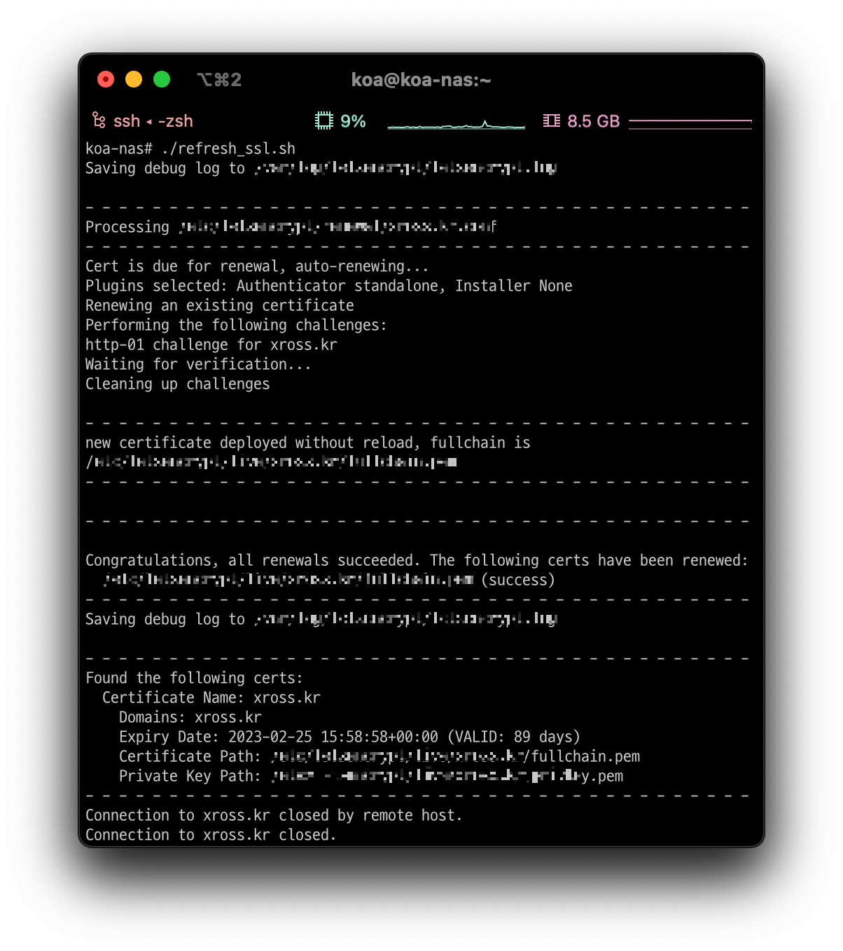 등으로 자동 실행을 예약해 주면 된다. 위의 경우는 매달 1일 오전 4시 1분에 갱신을 시도한다는 의미인데,