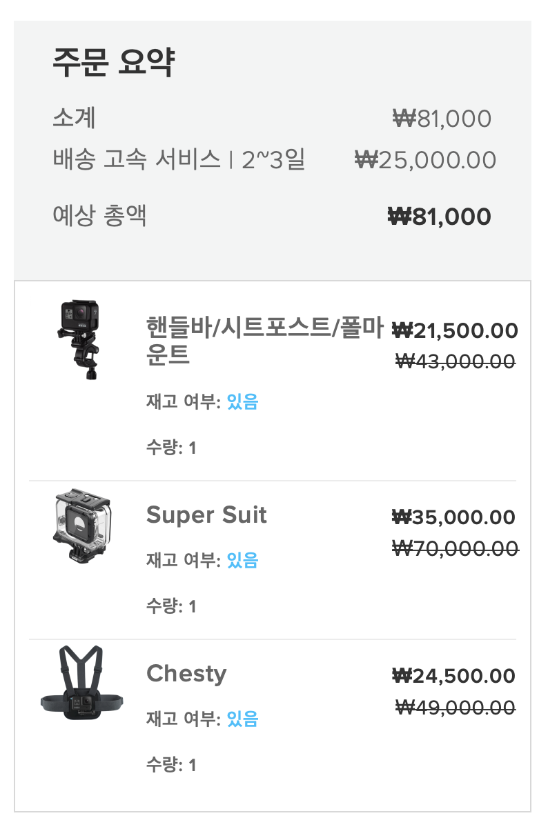 다음은 제가 GoPro PLUS에 가입하지 않았을 때의 장바구니입니다.